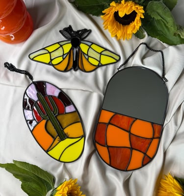 L'originalité de Vitrailfever, c'est que chaque création peut être suspendue à une fenêtre, déposée sur un meuble ou accrochée au mur ! Des vitraux mobiles, selon tes envies, c'est pas génial?